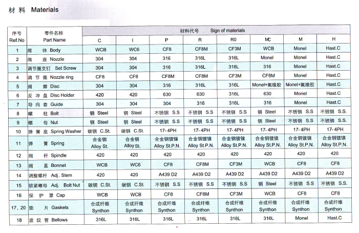 ★反沖盤和導(dǎo)向套、閥桿和調(diào)整螺桿的材料選用合理、零件相關(guān)間隙配合適當(dāng),保證閥瓣運(yùn)動(dòng)靈活。